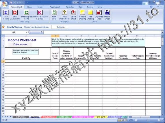 • Tax Assistant for Excel 2007 Professional v5.3 英文正式版(收入稅計算 Excel插件軟體)