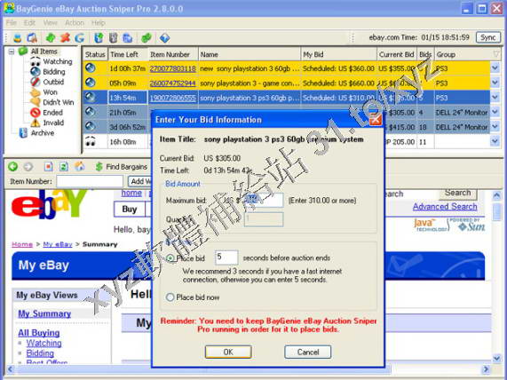 • BayGenie eBay Auction Sniper Pro v3.3.5.8 英文正式版(eBay的輔助交易軟體)